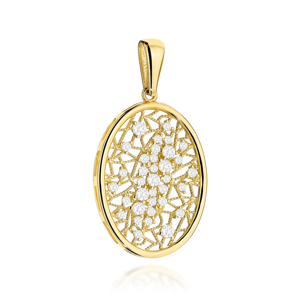 Zawieszka złota ażurowy owal z cyrkoniami