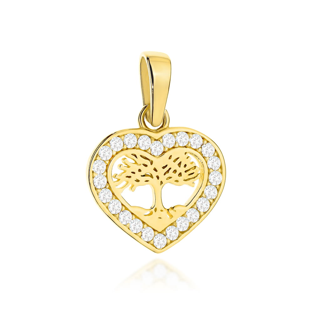 Zawieszka złota drzewko szczęścia w serduszku wysadzanym cyrkoniami