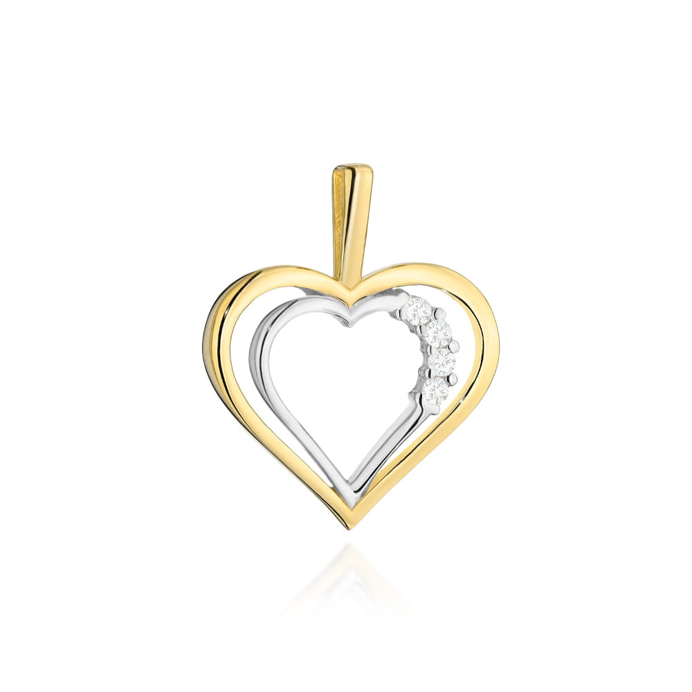 Zawieszka złota dwa serca w dwóch kolorach złota z cyrkoniami