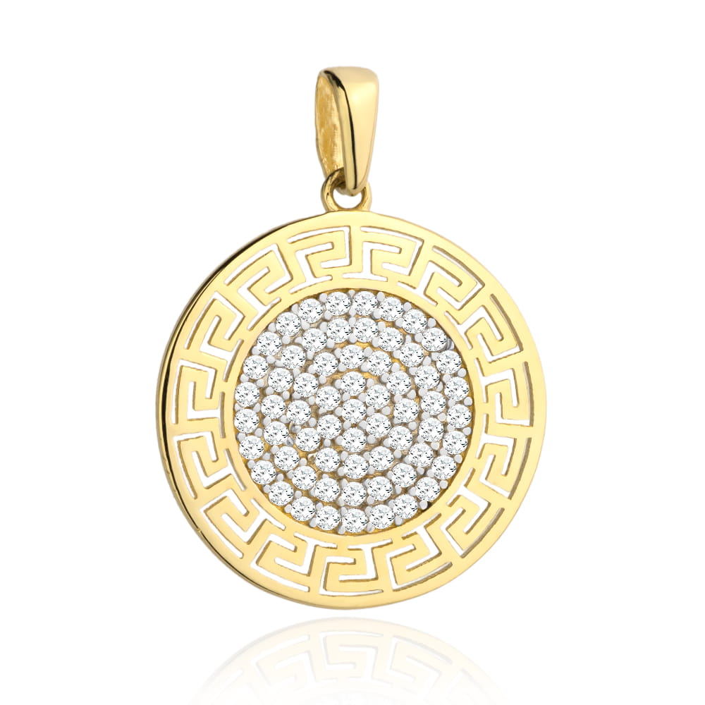 Zawieszka złota kółko grecki wzór i cyrkonie