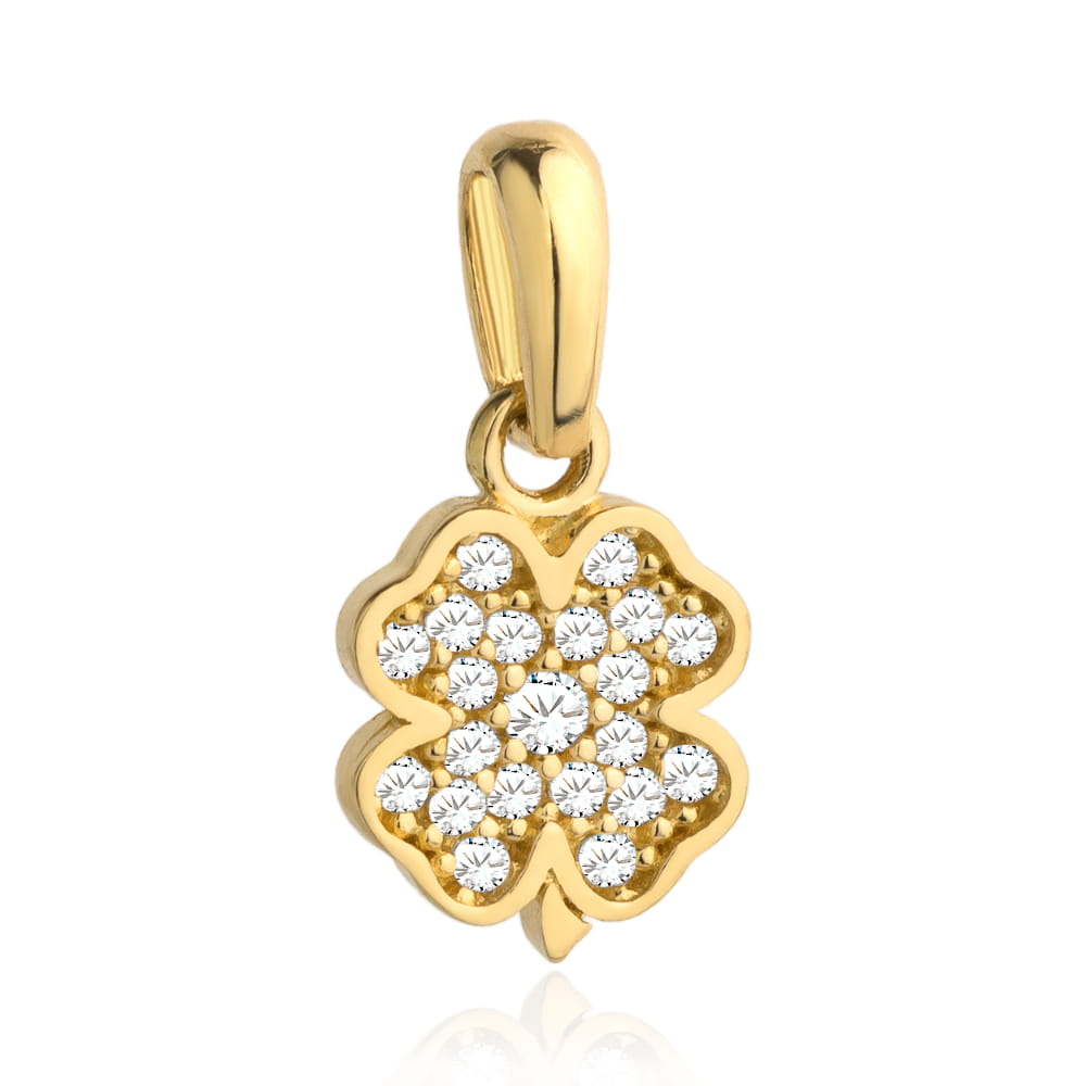 Zawieszka złota koniczynka wysadzana cyrkoniami