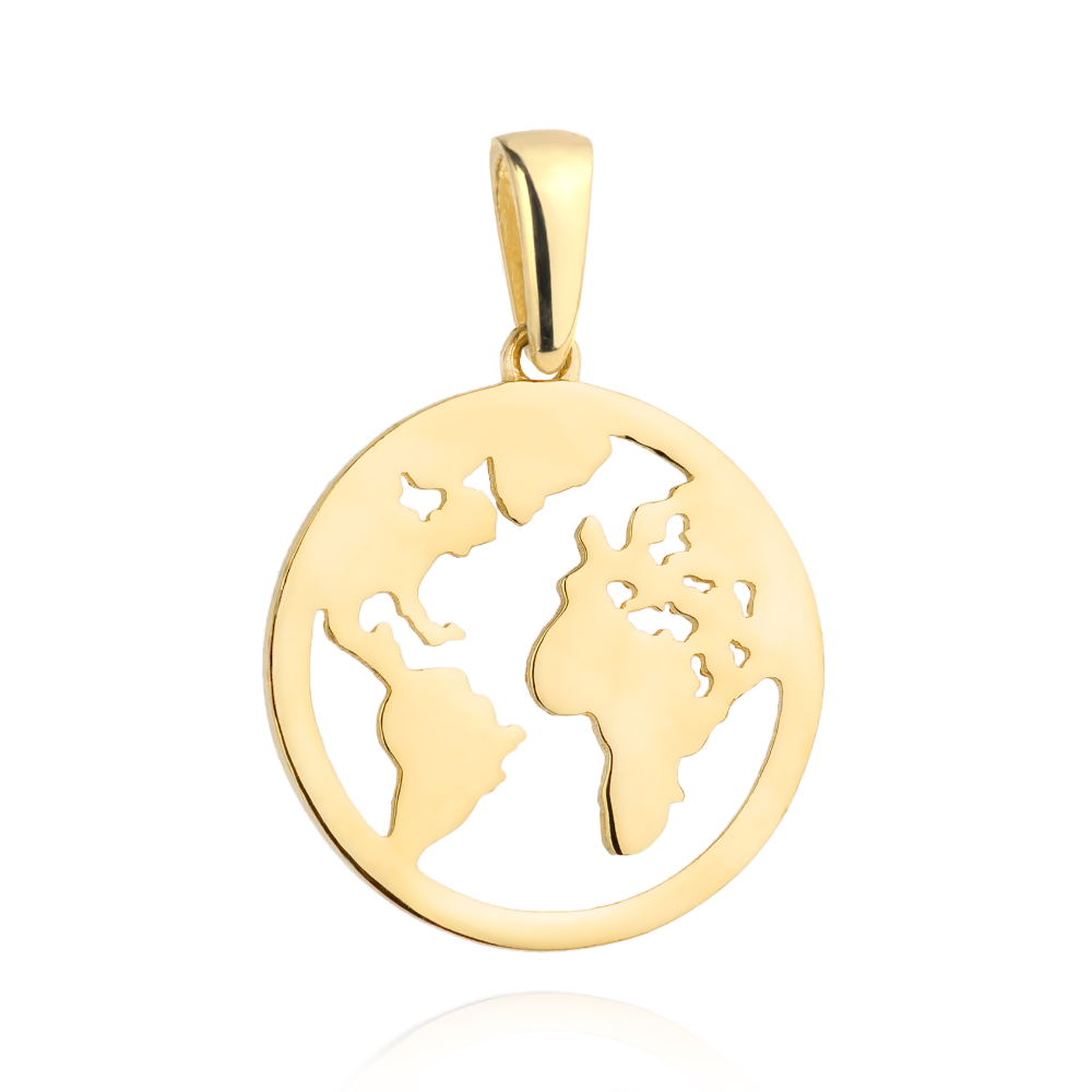 Precyzyjnie wykonana zawieszka próby 585 w kształcie kuli ziemskiej.