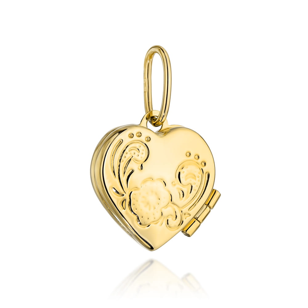 Zawieszka złota puzderko serce z kwiatami