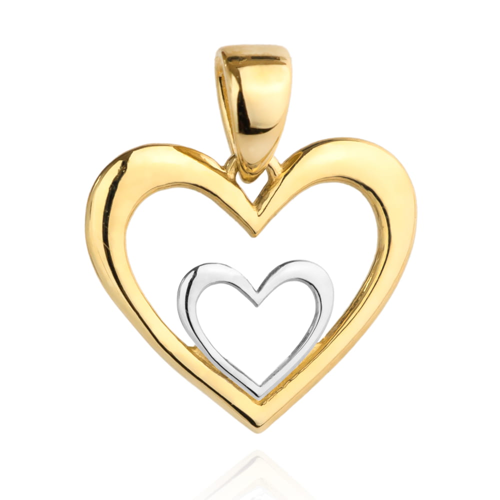 Zawieszka złota serce z serduszkiem z białego złota