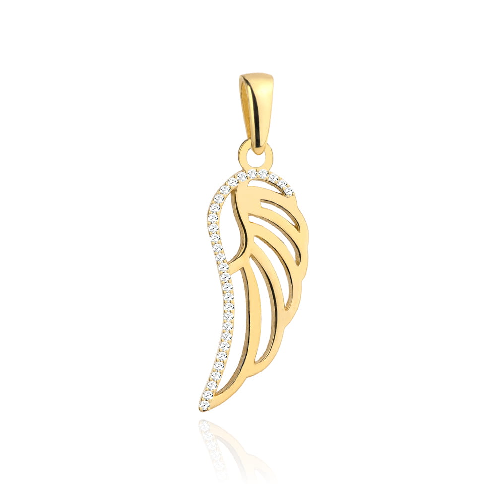Zawieszka złota skrzydło zdobione cyrkoniami