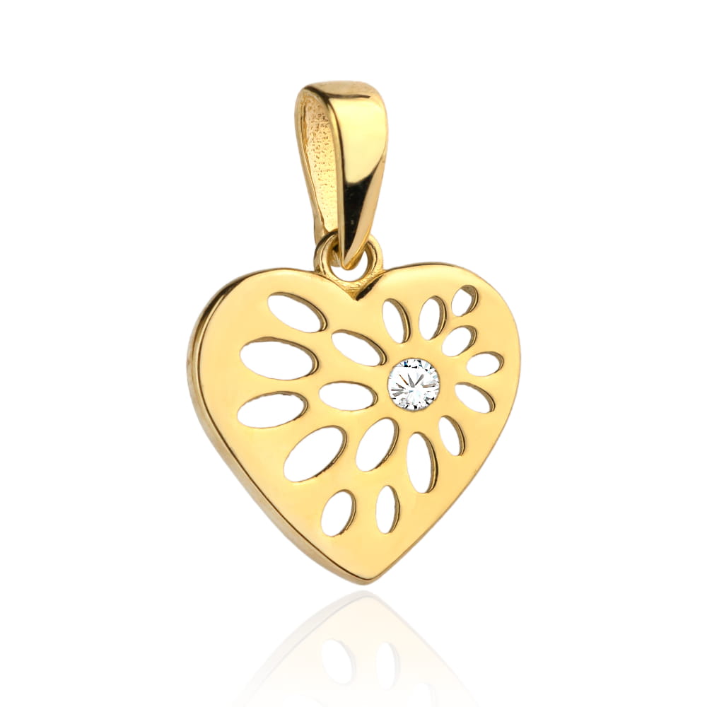 Zawieszka złota wzorzyste serduszko z cyrkonią