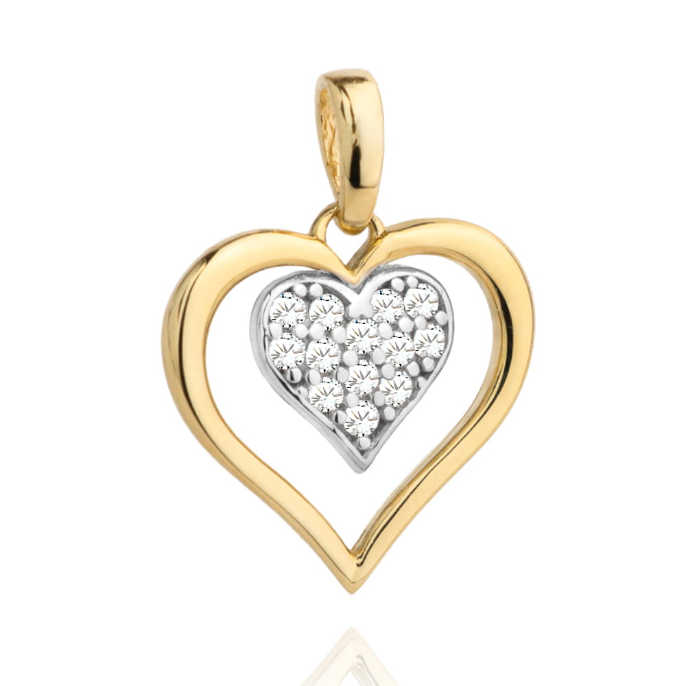 Zawieszka złote serce z serduszkiem wysadzanym cyrkoniami w środku