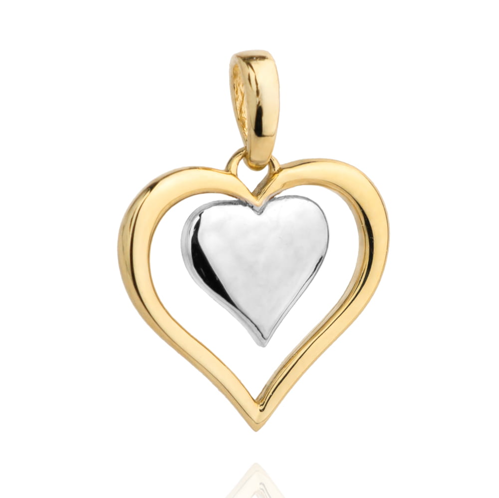 Zawieszka złote serce z serduszkiem z białego złota w środku