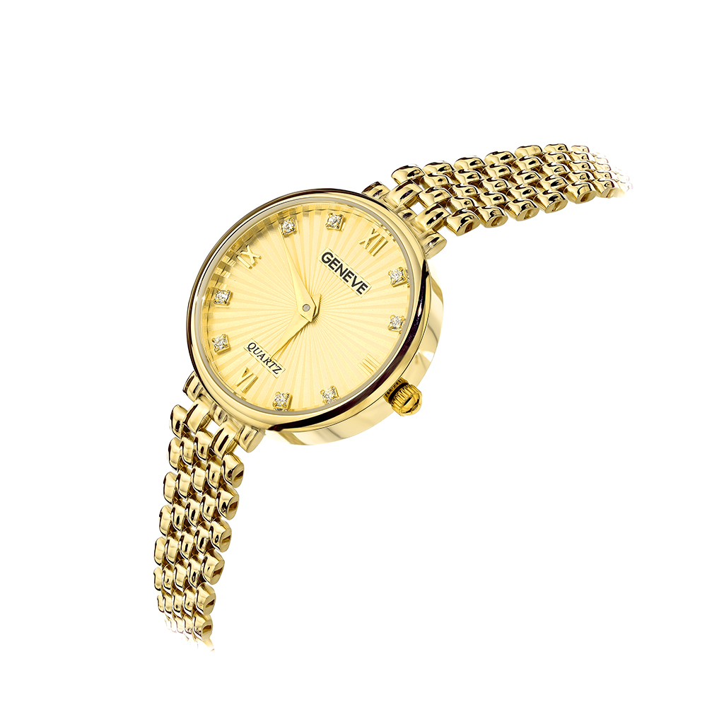 Zegarek złoty z okrągłą tarczą i cyrkoniami V