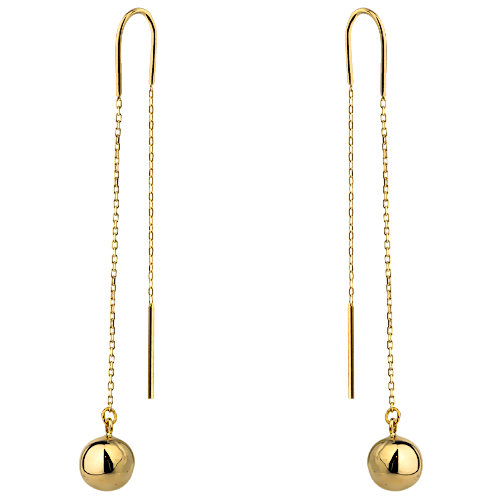 Złote kolczyki przewlekane gładkie kulki na łańcuszku