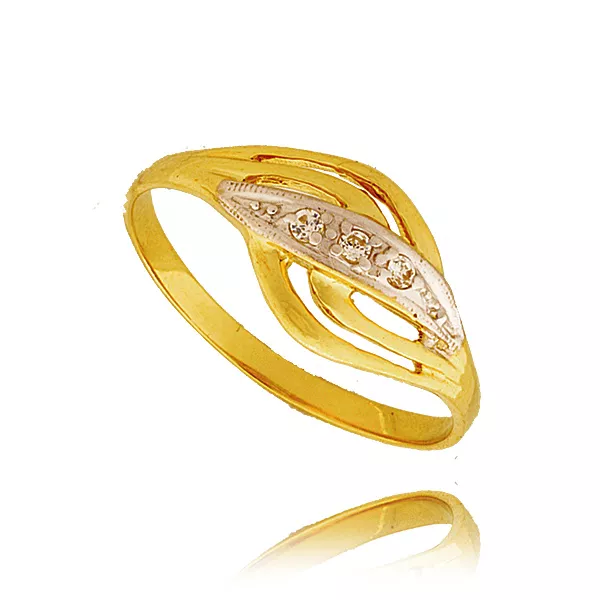 Złoty pierścionek podkreślający subtelny blask kamieni.