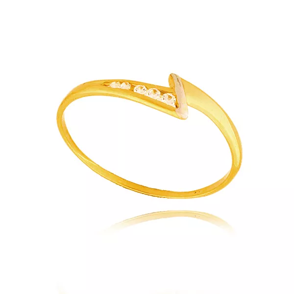 Złoty pierścionek podkreślający subtelny blask kamieni.