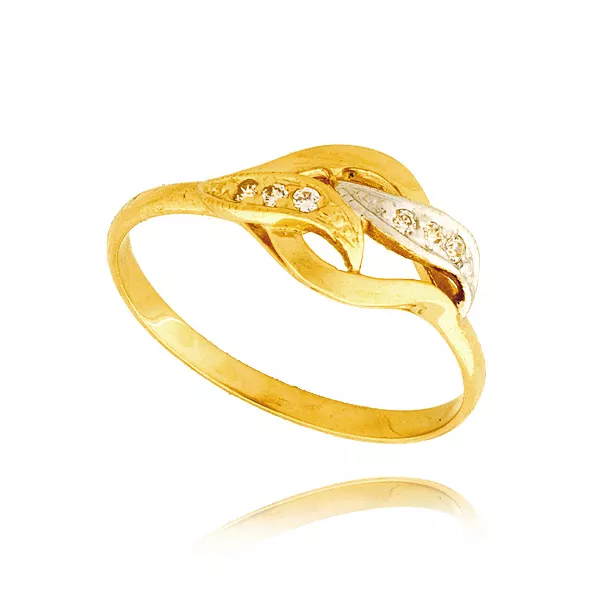 Złoty pierścionek podkreślający subtelny blask kamieni.
