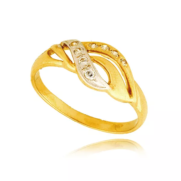 Złoty pierścionek podkreślający subtelny blask kamieni.
