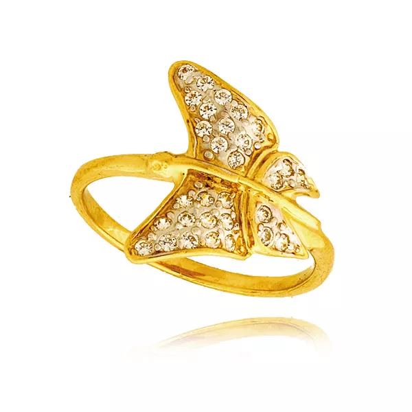 Złoty pierścionek podkreślający subtelny blask kamieni.