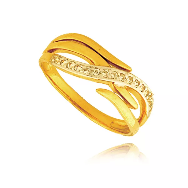 Złoty pierścionek podkreślający subtelny blask kamieni.