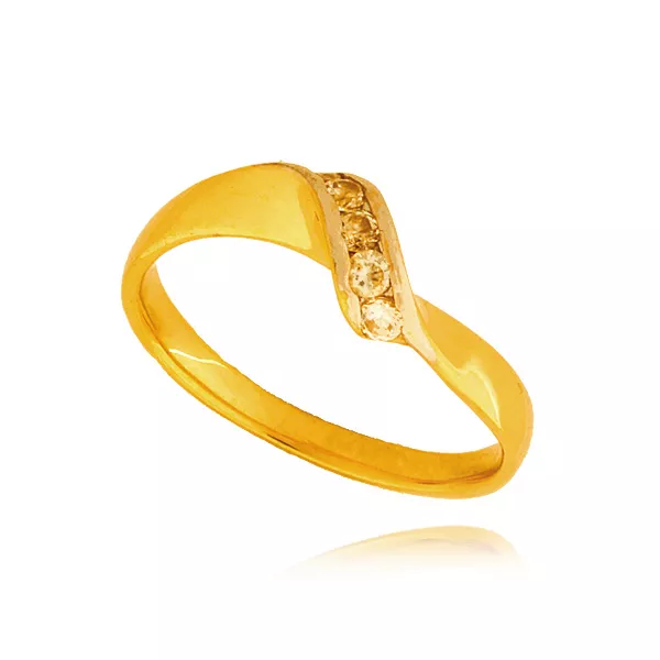 Złoty pierścionek podkreślający subtelny blask kamieni.