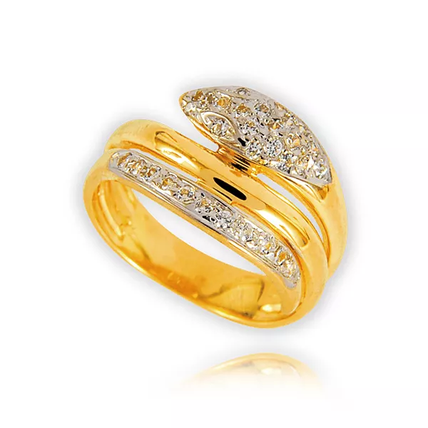 Złoty pierścionek podkreślający subtelny blask kamieni.