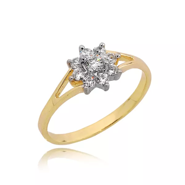 Złoty pierścionek podkreślający subtelny blask kamieni.