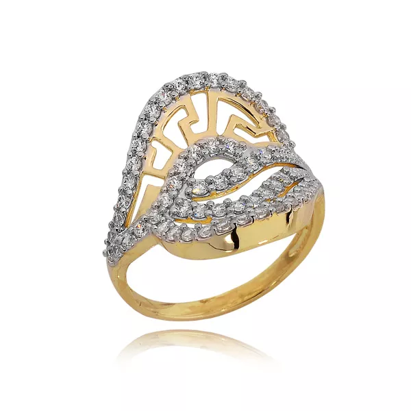Złoty pierścionek podkreślający subtelny blask kamieni.