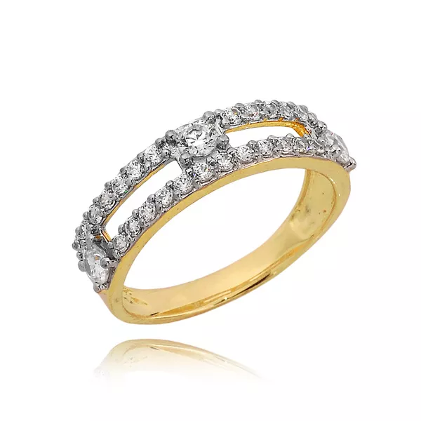 Złoty pierścionek podkreślający subtelny blask kamieni.