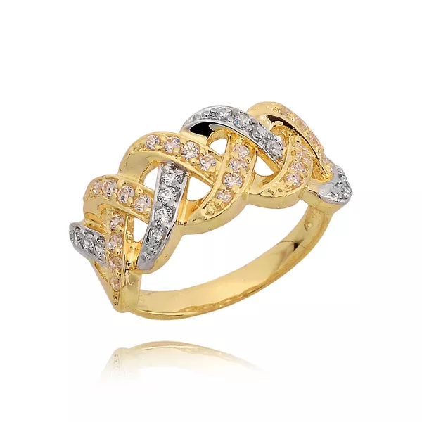 Złoty pierścionek podkreślający subtelny blask kamieni.