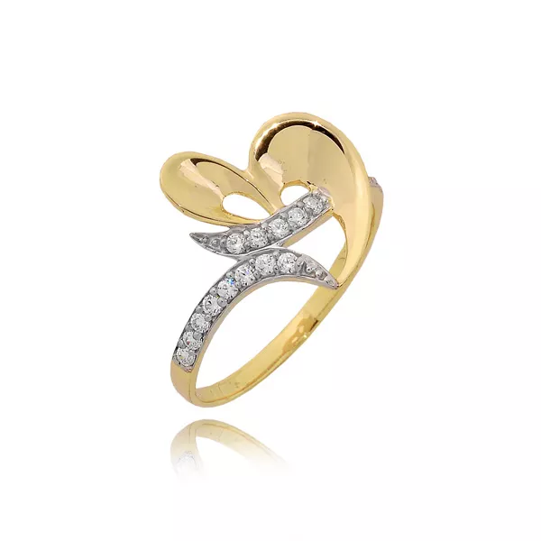 Złoty pierścionek podkreślający subtelny blask kamieni.
