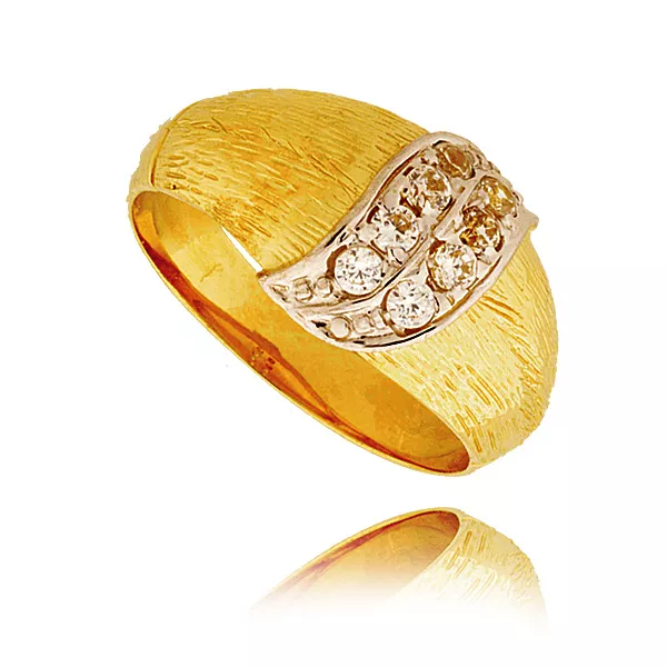 Złoty pierścionek podkreślający subtelny blask kamieni.