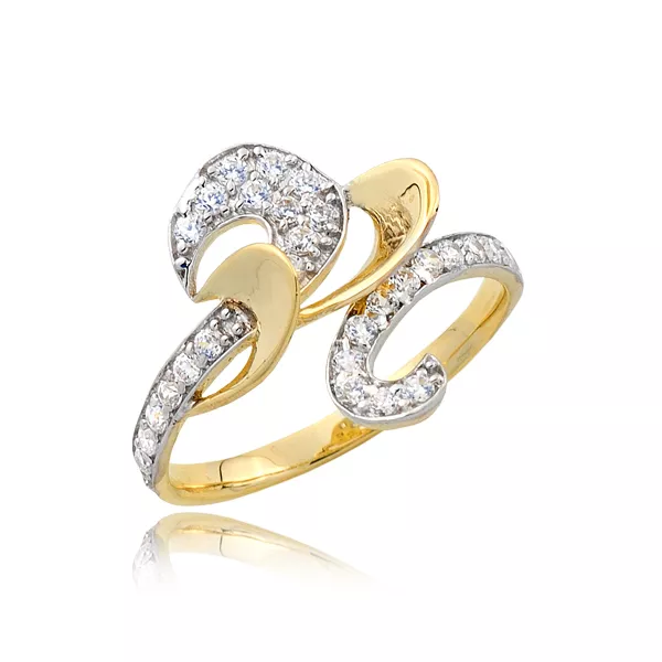 Złoty pierścionek podkreślający subtelny blask kamieni.