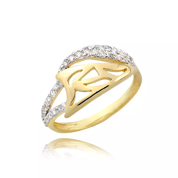 Złoty pierścionek podkreślający subtelny blask kamieni.