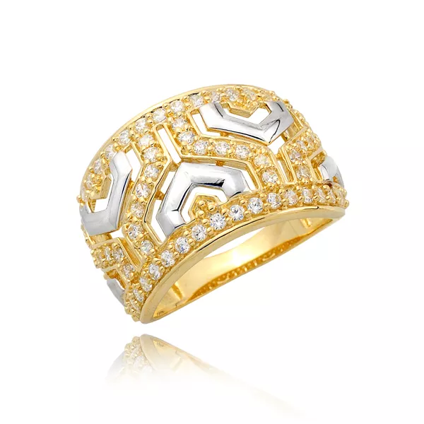 Złoty pierścionek podkreślający subtelny blask kamieni.