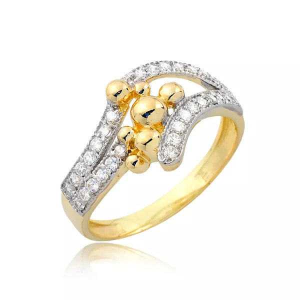 Złoty pierścionek podkreślający subtelny blask kamieni.