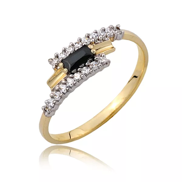 Elegancki pierścionek wykonany z wysokiej jakości złota. W zależności od modelu może zawierać szafiry, rubiny, szmaragdy, tanzanity, granaty lub inne kamienie kolorowe. Uniwersalna forma sprawia, że biżuteria pasuje do każdej stylizacji.