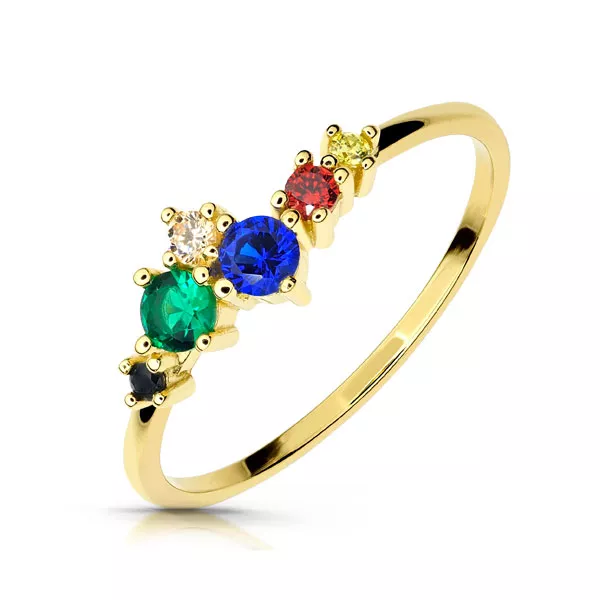 Elegancki pierścionek wykonany z wysokiej jakości złota. W zależności od modelu może zawierać szafiry, rubiny, szmaragdy, tanzanity, granaty lub inne kamienie kolorowe. Uniwersalna forma sprawia, że biżuteria pasuje do każdej stylizacji.