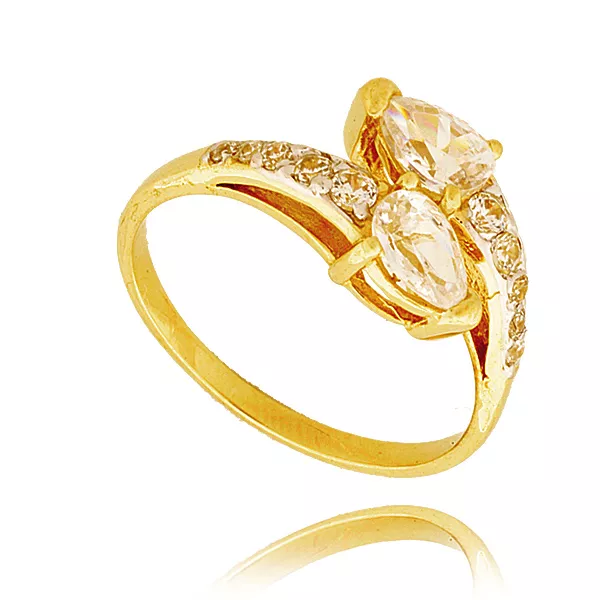 Złoty pierścionek podkreślający subtelny blask kamieni.