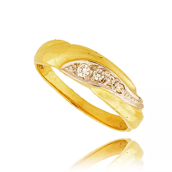 Złoty pierścionek podkreślający subtelny blask kamieni.