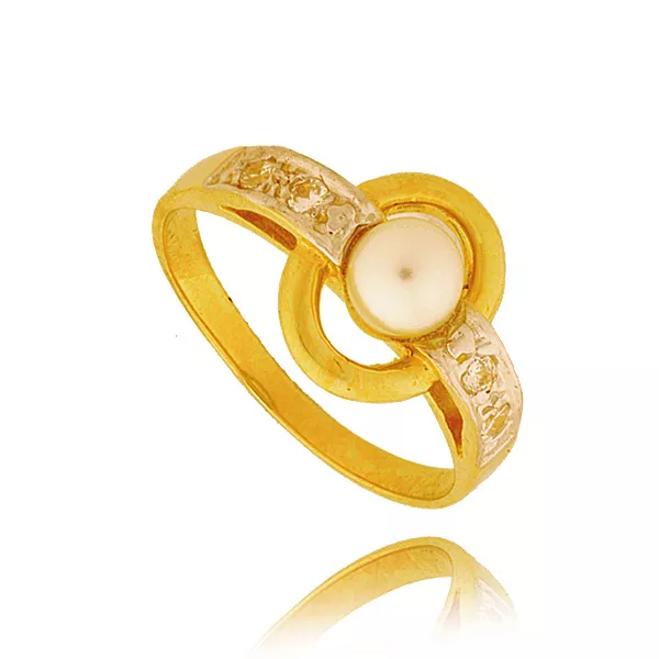 Złoty pierścionek podkreślający subtelny blask kamieni.