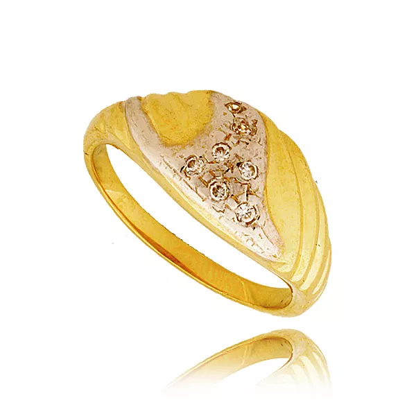 Złoty pierścionek podkreślający subtelny blask kamieni.
