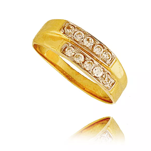 Złoty pierścionek podkreślający subtelny blask kamieni.