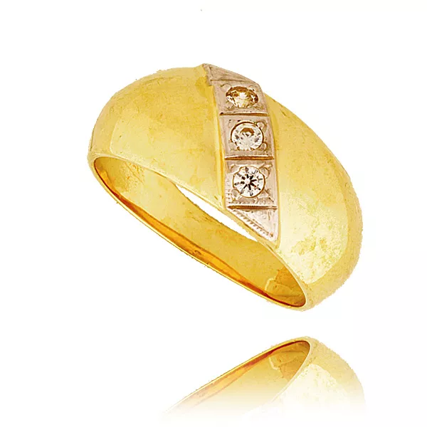 Złoty pierścionek podkreślający subtelny blask kamieni.