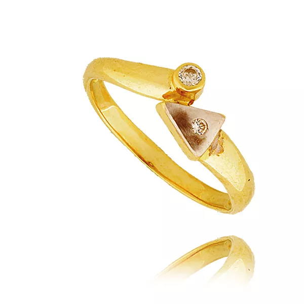 Złoty pierścionek podkreślający subtelny blask kamieni.