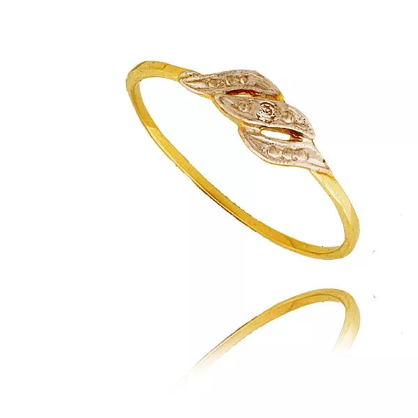 Złoty pierścionek podkreślający subtelny blask kamieni.