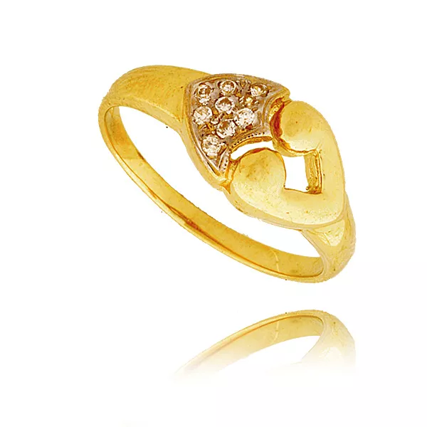 Złoty pierścionek podkreślający subtelny blask kamieni.