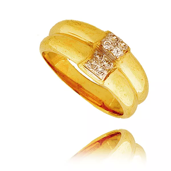 Złoty pierścionek podkreślający subtelny blask kamieni.