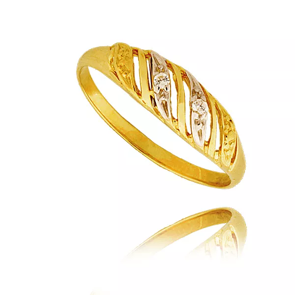 Złoty pierścionek podkreślający subtelny blask kamieni.