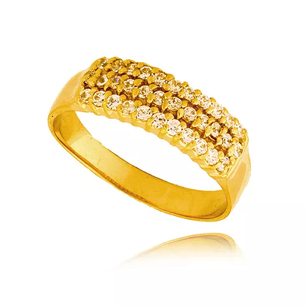 Stylowy pierścionek będący doskonałym wyborem dla osób ceniących jakość i estetykę. Subtelny połysk kamieni pięknie współgra z kolorem złota.