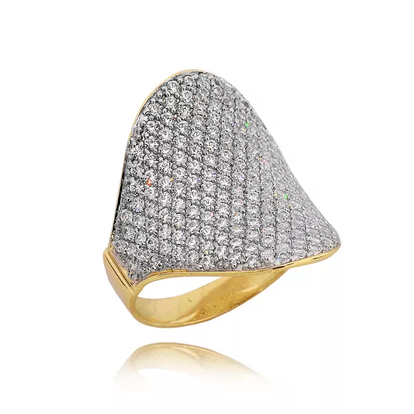 Stylowy pierścionek będący doskonałym wyborem dla osób ceniących jakość i estetykę. Subtelny połysk kamieni pięknie współgra z kolorem złota.