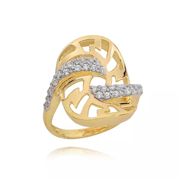 Stylowy pierścionek będący doskonałym wyborem dla osób ceniących jakość i estetykę. Subtelny połysk kamieni pięknie współgra z kolorem złota.