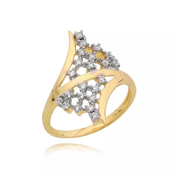 Stylowy pierścionek będący doskonałym wyborem dla osób ceniących jakość i estetykę. Subtelny połysk kamieni pięknie współgra z kolorem złota.