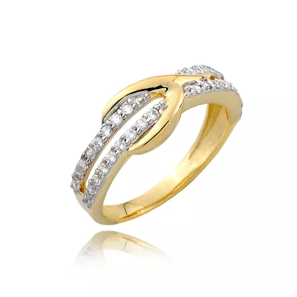 Stylowy pierścionek będący doskonałym wyborem dla osób ceniących jakość i estetykę. Subtelny połysk kamieni pięknie współgra z kolorem złota.